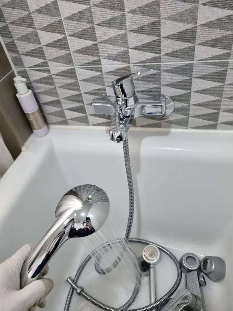 호스를 함께 교체할 때는 길이를 맞춥니다. 너무 짧으면 사용이 불편하고, 너무 길면 꼬이거나 걸릴 수 있습니다. 욕조 위에서 자연스럽게 사용할 수 있는 길이가 적당합니다.